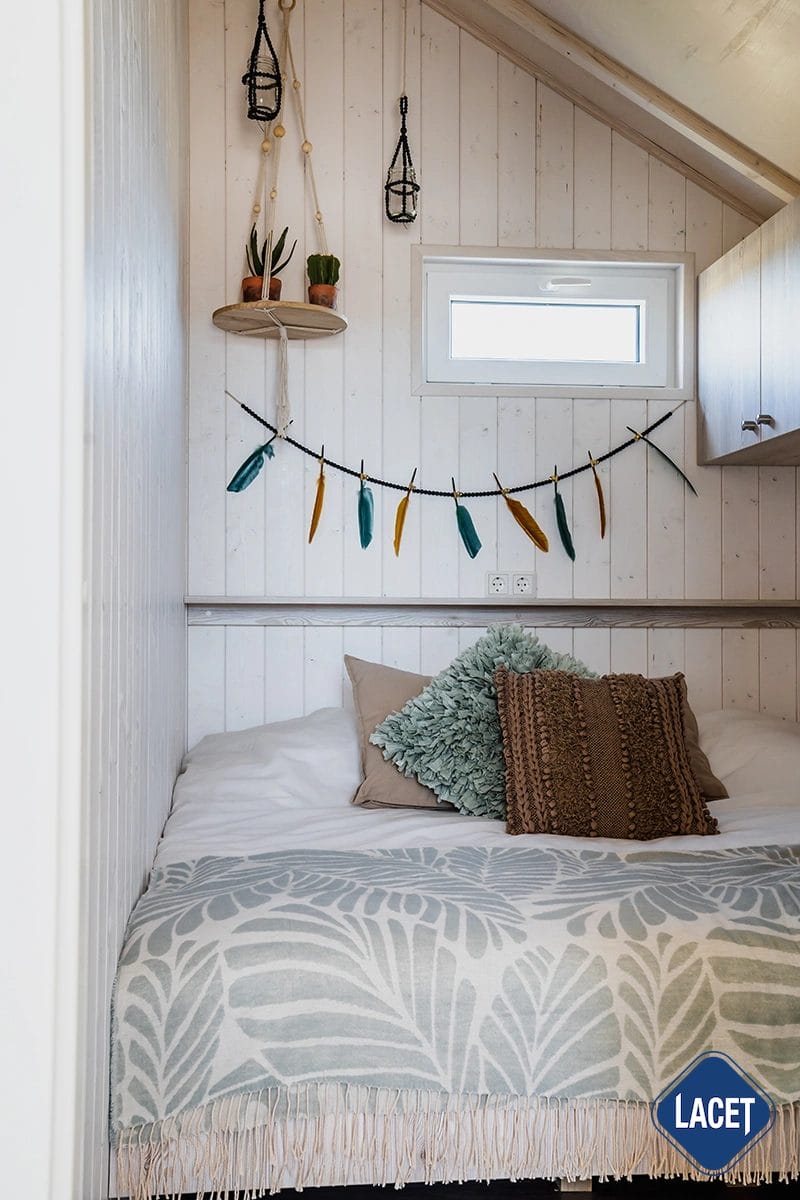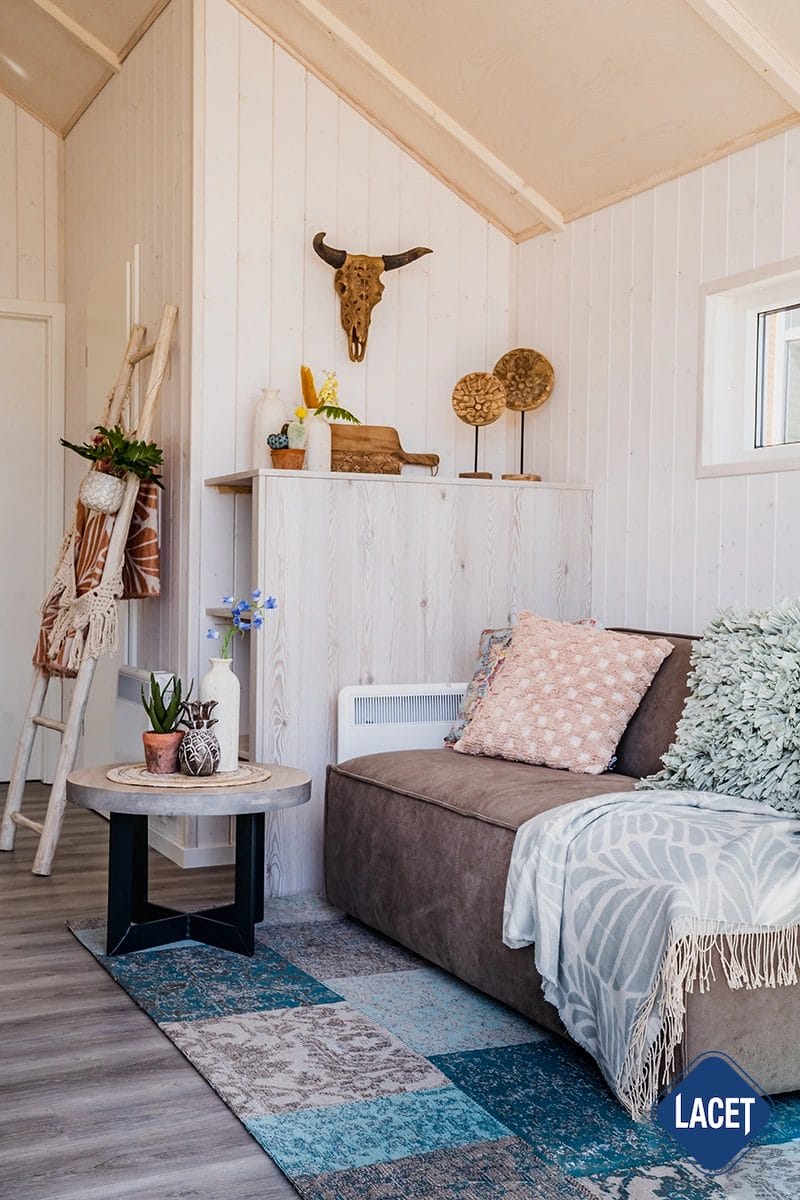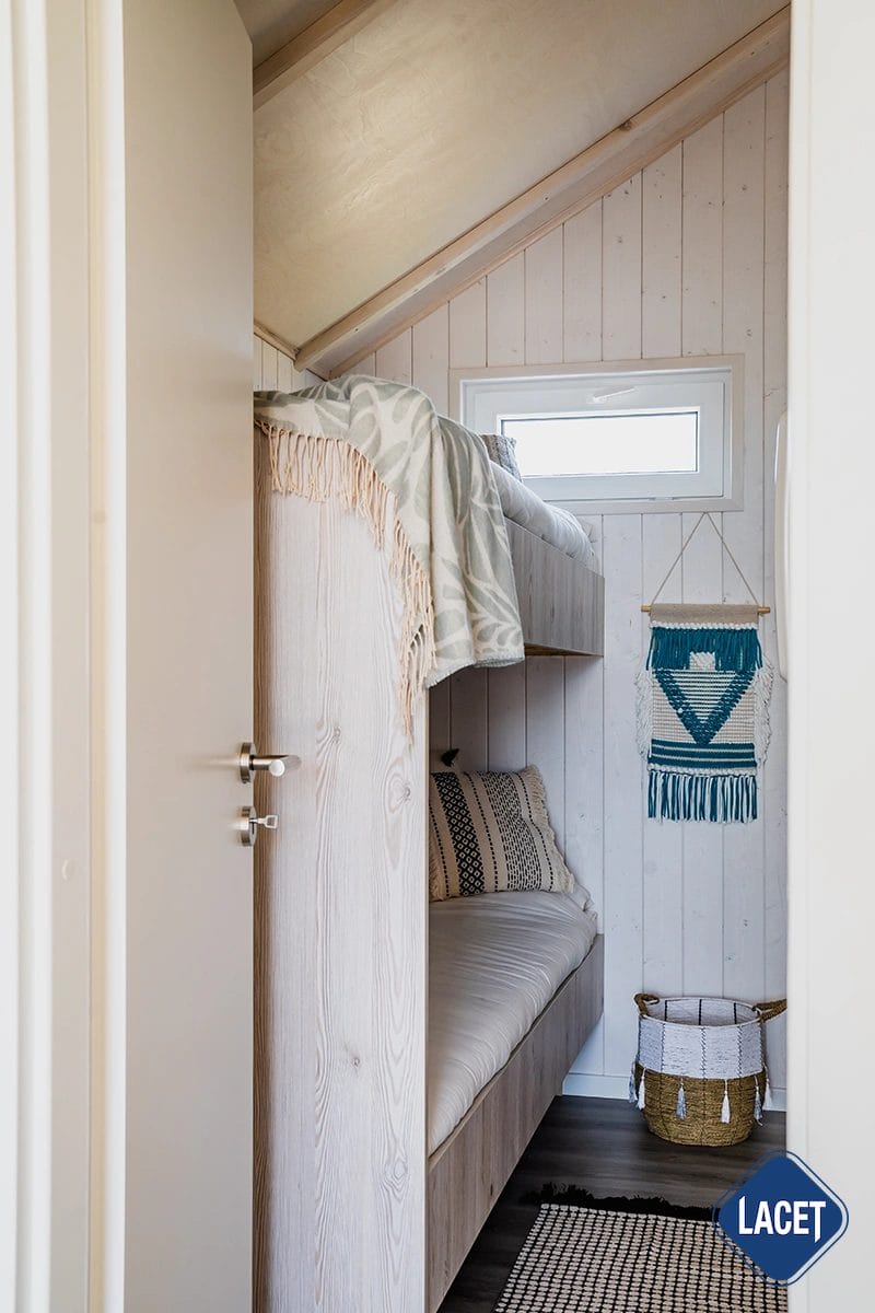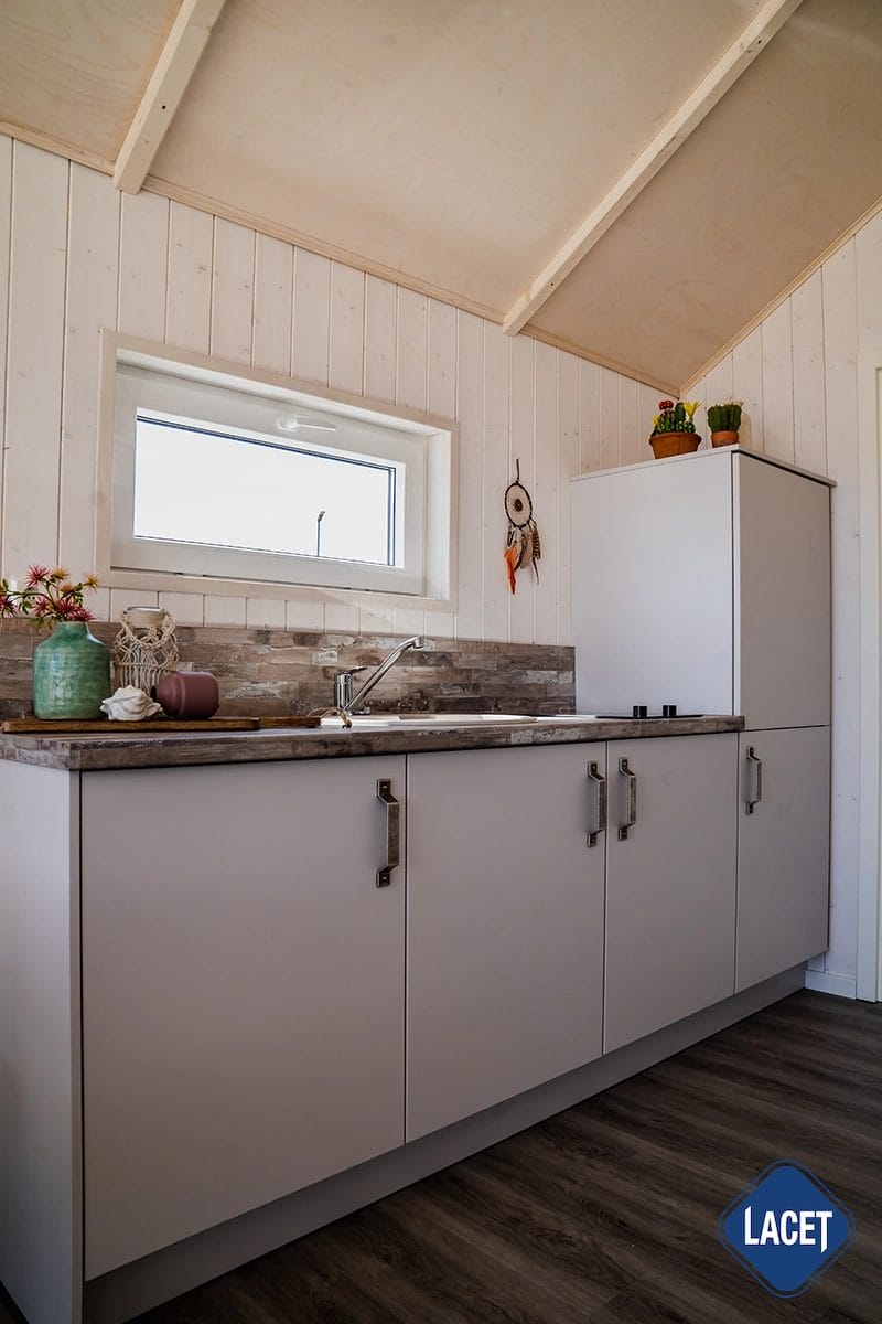 Barfuß durch den Sand, Salz in der Luft und das Meeresrauschen als ständiger Begleiter: Das LACET Marlin Beach ist ein durchdachtes Strandhaus, das wie gemacht ist für entspannte Tage direkt am Wasser. Die Farben und Materialien sind inspiriert vom Küstenflair und schaffen eine natürliche, ruhige Atmosphäre. Helle Holzelemente im Innenraum, kombiniert mit einer großzügigen Fensterfront, sorgen für eine offene, lichtdurchflutete Wohnstimmung. Der Wohnbereich mit gemütlicher Sitzecke geht fließend in den Essplatz und die funktionale Küche über. Das Marlin Beach eignet sich hervorragend für den privaten Gebrauch in der Sommersaison, aber auch ideal zur saisonalen Vermietung – z. B. auf Campingplätzen, in Ferienparks oder als Teil eines Beach House Projekts.